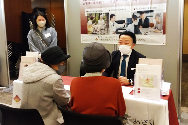 前回の開催時より「高齢者向けの終身保証」が浸透してきたようで、有料老人ホームのブース見学とともに私たちのブースにたくさんの方がお越しくださいました。
